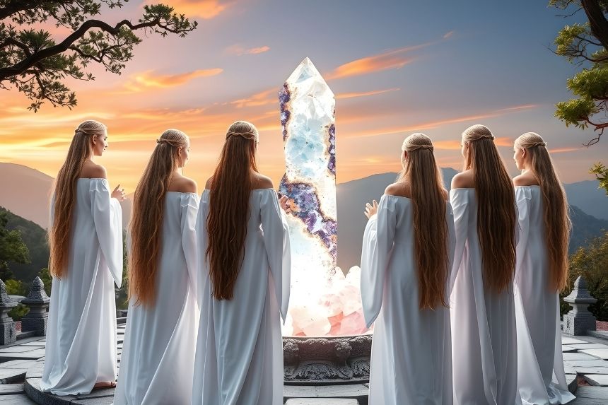 Alles is harmonie, vrede en liefde, sommige kristallen genereren zelf licht en anderen zenden pure frequenties uit van pure liefde en heling.
